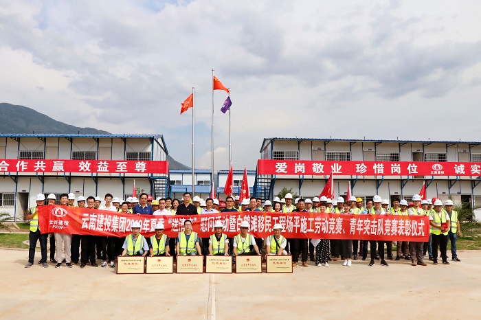 7月17日,集團(tuán)公司工會(huì)常務(wù)副主席楊金到巧家白鶴灘水電站移民工程指揮部開展“送清涼” 慰問活動(dòng),并對(duì)前期開展的白鶴灘移民工程場(chǎng)平施工勞動(dòng)競(jìng)賽、青年突擊隊(duì)競(jìng)賽進(jìn)行表彰。云南省鐵路總公司金塘安置點(diǎn)場(chǎng)平項(xiàng)目表現(xiàn)突出、成績(jī)優(yōu)異,青春先鋒青年突擊隊(duì)榮獲集團(tuán)“優(yōu)秀青年突擊隊(duì)”,項(xiàng)目部榮獲“白鶴灘移民工程項(xiàng)目勞動(dòng)競(jìng)賽優(yōu)勝單位”、“工人先鋒號(hào)”,共三個(gè)集體獎(jiǎng)項(xiàng),趙向坤獲得了“優(yōu)秀青年崗位能手” 個(gè)人獎(jiǎng)項(xiàng)。