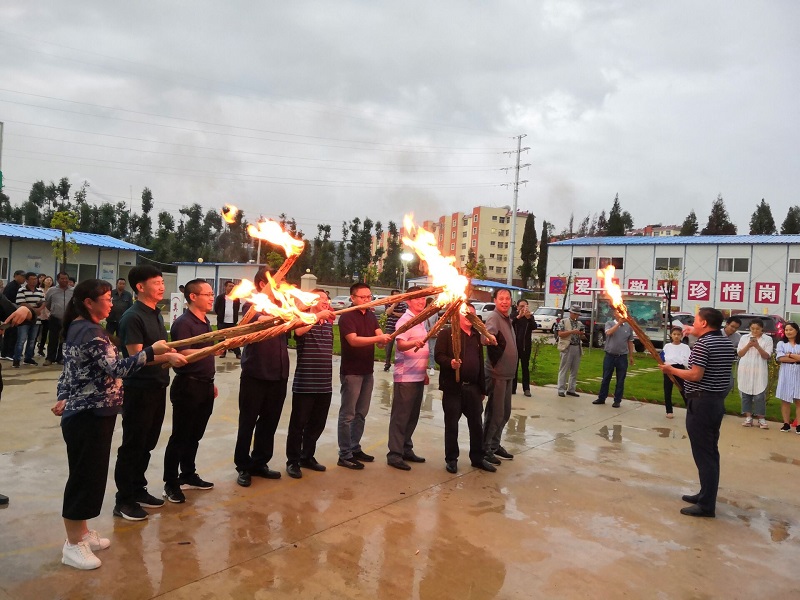 比賽結(jié)束后,在EPC項(xiàng)目部會(huì)議室舉行了座談會(huì)。下午8點(diǎn),象征彝族人民祈盼豐收和幸福的火把在EPC項(xiàng)目部操場(chǎng)點(diǎn)燃,大家手拉手、肩并肩,把火把圍了一圈又一圈,伴隨著跳動(dòng)的火焰、伴隨著歡快的音樂(lè)載歌載舞,把此次活動(dòng)推向了一個(gè)歡樂(lè)祥和、熱情洋溢的高潮!