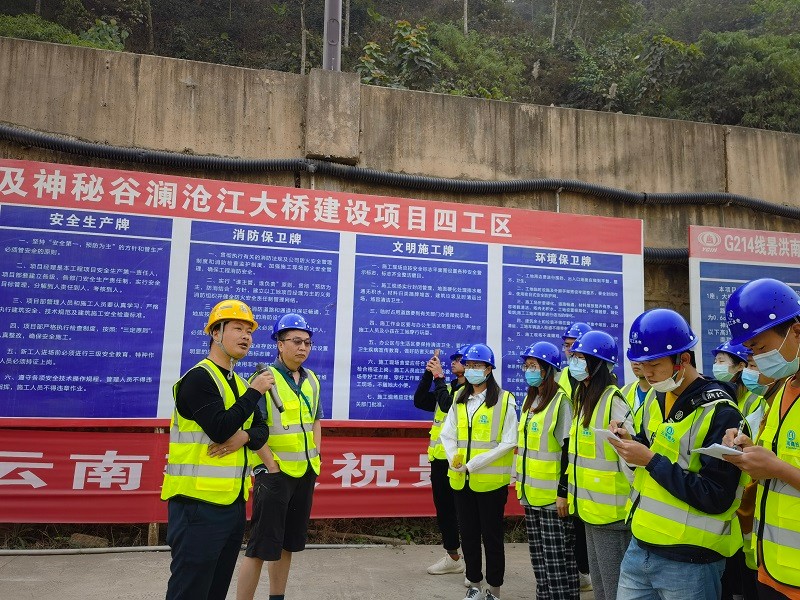 3月9日上午,昆明理工大學(xué)師生到云鐵集團(tuán)G214線景洪市神秘谷瀾滄江大橋項(xiàng)目施工現(xiàn)場觀摩學(xué)習(xí)。