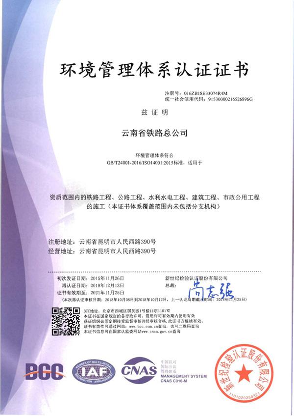 環(huán)境管理體系認證證書