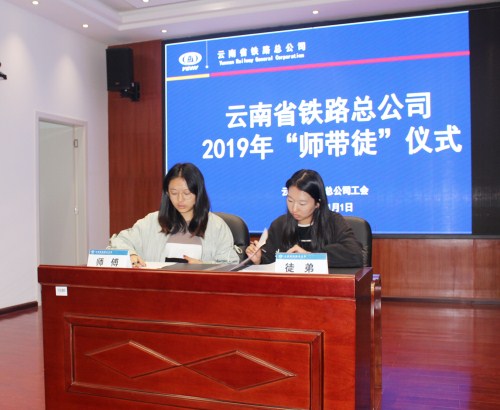 11月1日,云南省鐵路總公司一年一度的“師帶徒”拜師儀式在總公司四樓會議室舉行??偣緳C關各部室、直管項目部40余人參加了拜師儀式。